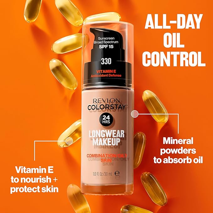 Revlon Liquid Foundation, ColorStay Face Makeup for Combination & Oily Skin, SPF 15, Medium-Full Coverage with Matte Finish, 220 Natural Beige, 1 Fl Oz