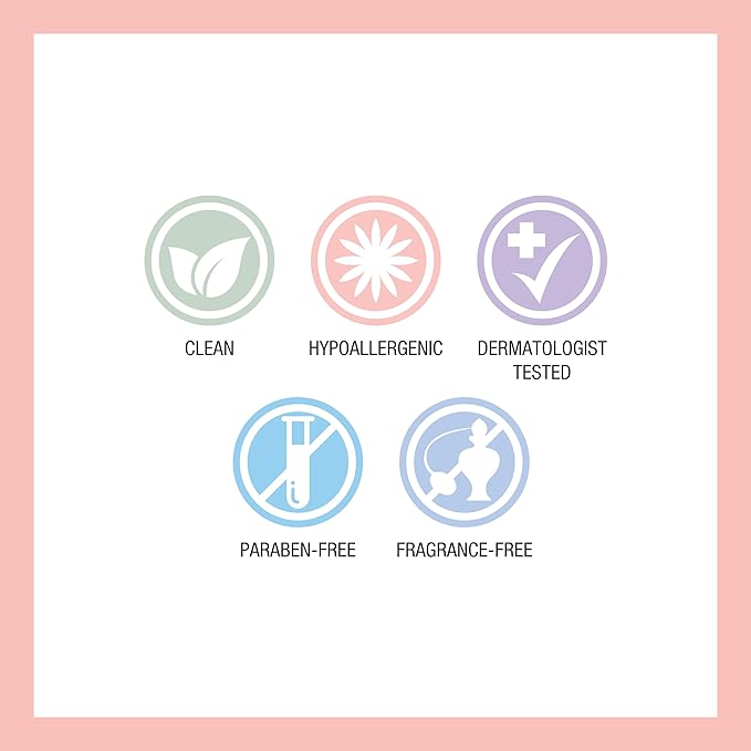 - Hypoallergenic; Fragrance free; Paraben free; Non-Comedogenic; Dermatologist approved