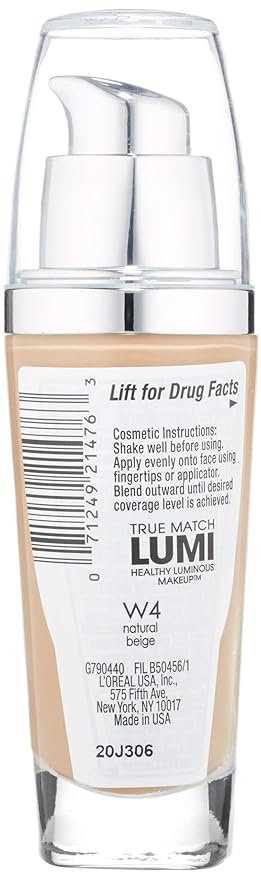 L'Oreal Paris True Match Lumi Healthy Luminous Makeup, W4 Natural Beige, 1 fl; oz.