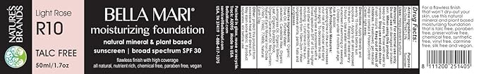 Bella Mari Natural Moisturizing Foundation, Light Rose (R10); 1.7floz Glass