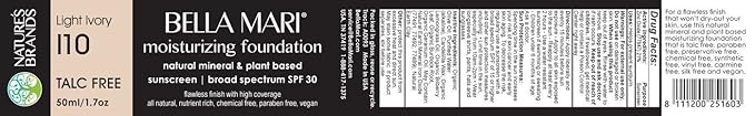 Bella Mari Natural Moisturizing Foundation, Light Ivory (I10); 1.7floz Glass