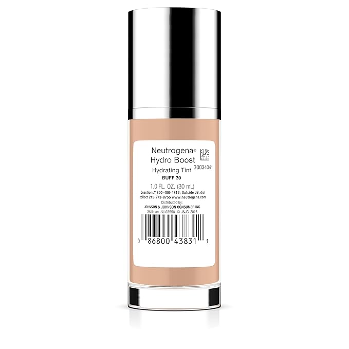 Neutrogena Hydro Boost Hydrating Tint with Hyaluronic Acid, Lightweight Water Gel Formula, Moisturizing, Oil-Free & Non-Comedogenic Liquid Foundation Makeup, 30 Buff Color, 1.0 fl. oz