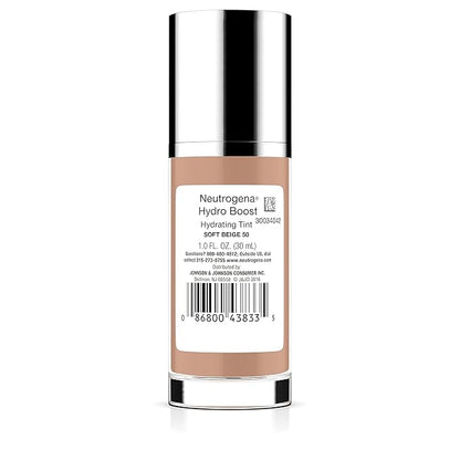 Neutrogena Hydro Boost Hydrating Tint with Hyaluronic Acid, Lightweight Water Gel Formula, Moisturizing, Oil-Free & Non-Comedogenic Liquid Foundation Makeup, 50 Soft Beige, 1.0 fl. oz