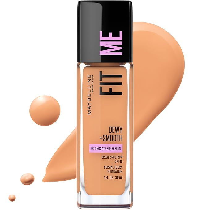 - Maybelline Fit Me Dewy Foundation With Spf: Ideal for normal to dry skin, this liquid foundation hydrates and smoothes skin texture for a natural-looking, luminous finish; Protects with SPF 18