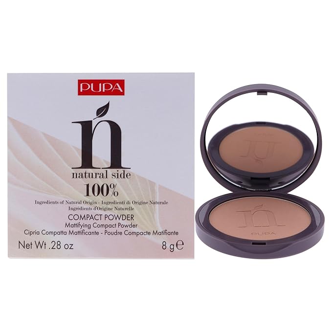 PUPA Milano Natural Side Compact Powder 003 Warm Beige - Blurring, Matte Pressed Powder - Lightweight Coverage for a Radiant, Poreless Complexion - With Texture-Smoothing Jojoba Oil - 0.28 oz