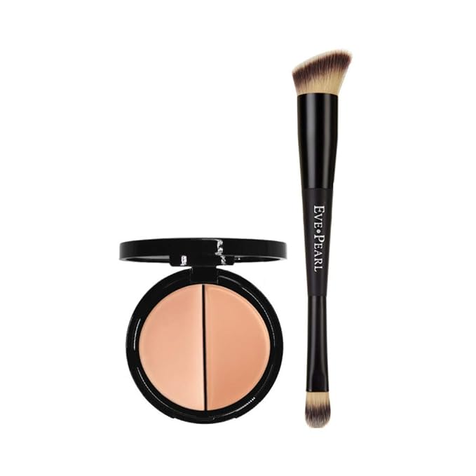 EVE PEARL Dual Salmon Concealer And 202 Concealer Blender Brush Full Coverage Under Brighten Eye Pro Concealer Brush Set Makeup Kit (Medium)