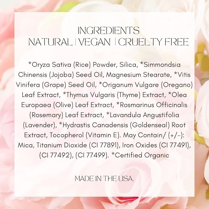 • All Natural * 75% Organic * Vegan * Gluten Free * Cruelty Free * Made in the USA