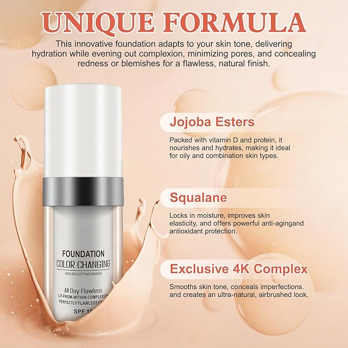 - Instantly color self-adjusts: One shade suits all color changing foundation is a revolutionary new liquid foundation that goes on white and instantly self-adjusts to match your exact skin tone, it can be applied to any skin color.