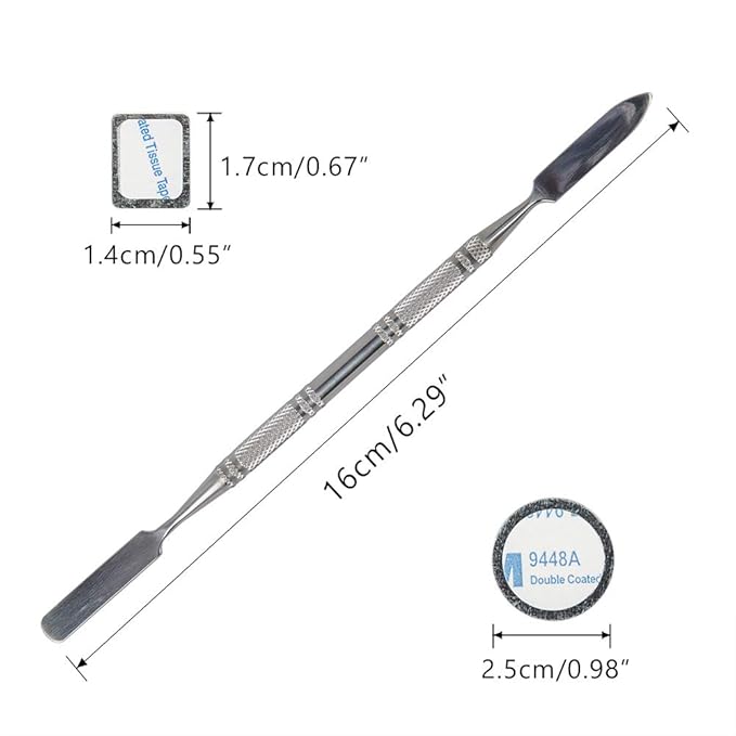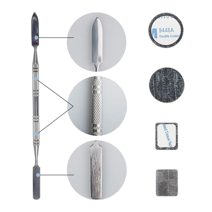 - How to use: depot your favorite eyeshadow, highlighters, and lipstick products from stubborn packaging with the stainless steel makeup spatula; Using the pointed tip to get into hard to reach corners of packaging and flat size to mix your favorite liquid, cream, powder products.