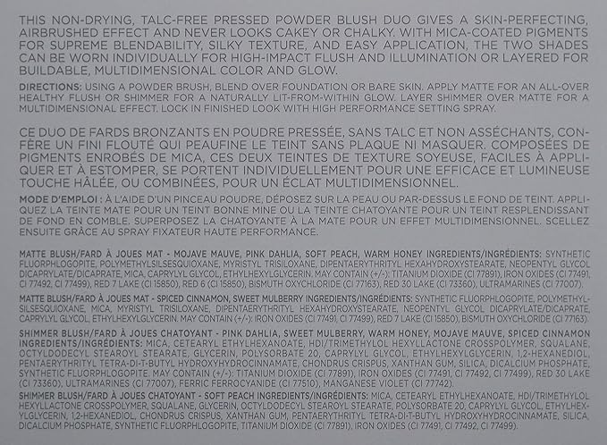 - THE PERFECT BLUSH DUO: Discover this matte and shimmer blush duo to illuminate and sculpt your face, now available in a peachy nude shade for all skin tones.