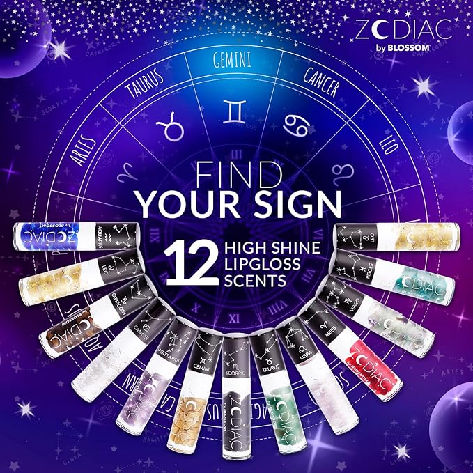 - ZODIAC CRYSTAL BLOSSOM LIP GLOSS: Instant, long-lasting, high shine lipgloss with crystals to align with your cosmic sign. Available in all 12 zodiac signs (Aries, Taurus, Gemini, Cancer, Leo, Virgo, Libra, Scorpio, Sagittarius, Capricorn, Aquarius, and Pisces) and make the perfect gift for those astrologically inclined