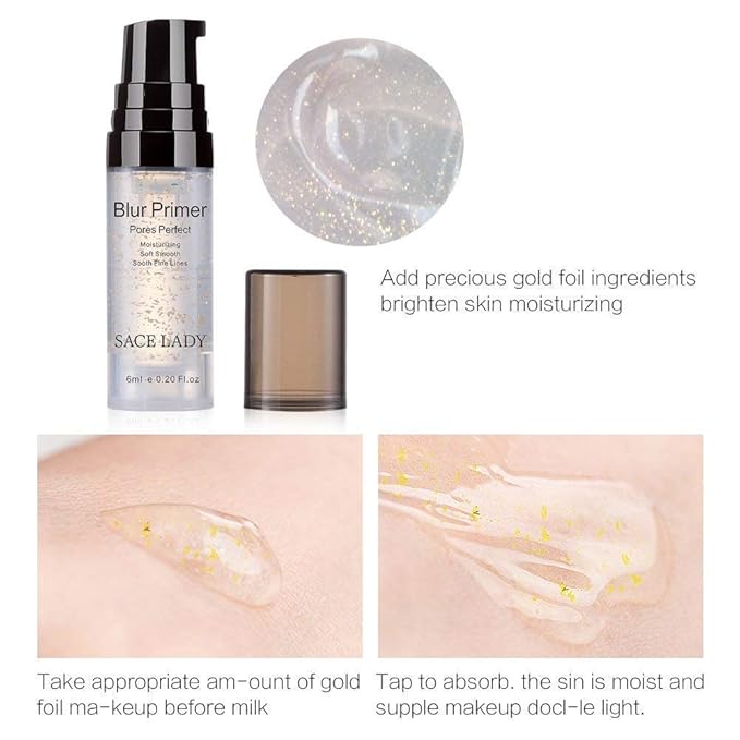 - SACE LADY GOLD FOIL INFUSED SKIN PRIMER: This Formula Is Infused With Gold Foil To Help Moisturizing Your Face, Boost Your Complexion And Hydrate Your Skin For a Fresh Look