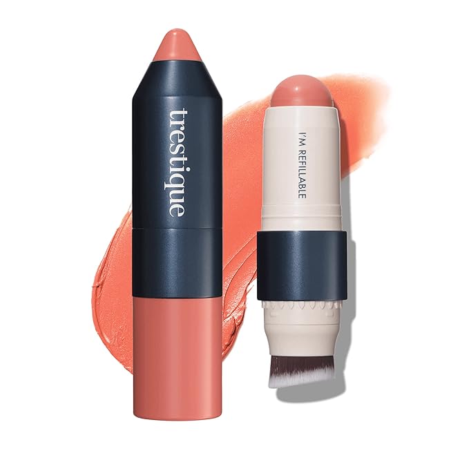 trestique Blush Stick, Vegan Blush Stick With Built-In Brush, Pink Blush Makeup For Women, Rose Makeup, 2-In-1 Creamy