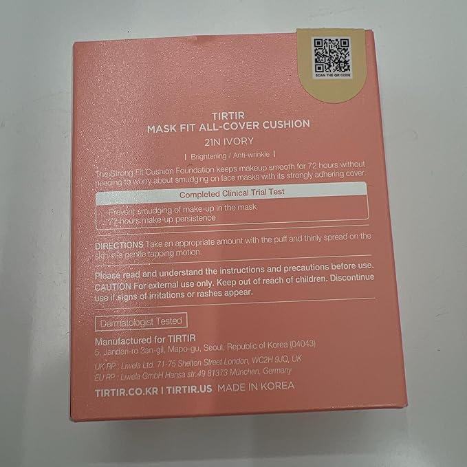 TIRTIR Mask Fit All Cover Pink Cushion Foundation | High coverage, Velvety Matte Finish, Lightweight, Flawless, Corrects Redness, Korean Cushion (#21N Ivory, Full Size, 0.63 Fl Oz)