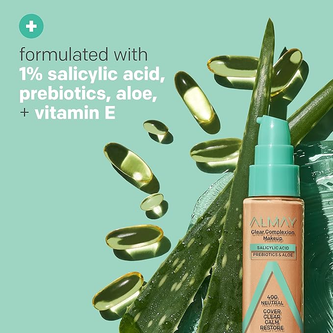 Almay Clear Complexion Acne Foundation Makeup with Salicylic Acid, Medium Coverage, Soft Matte Finish, Hypoallergenic, Cruelty- & Fragrance-Free, Dermatologist Tested, 200 Buff, 1 fl oz