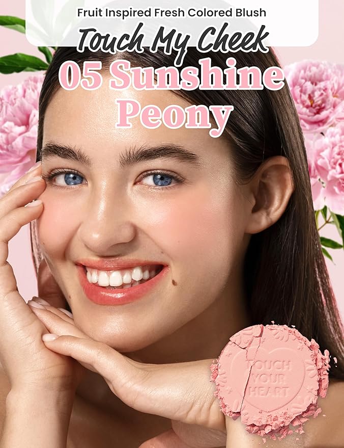 MILKTOUCH Touch My Cheek in Bloom Blush Sunshine Peony | Face Blushes Compact Powder Makeup | Oil Absorbing Powder Compact | For Oily Skin Korean Blush (0.18 oz)