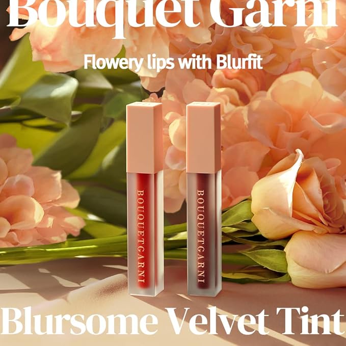 Bouquet Garni Blursome Velvet Lip Tint Red Vibe - Lip Stain Long Lasting Waterproof Korean Lip MakeUp Beauty Products - Smoother and Hydrating Lips with Rosehip Oil and Honey Extract