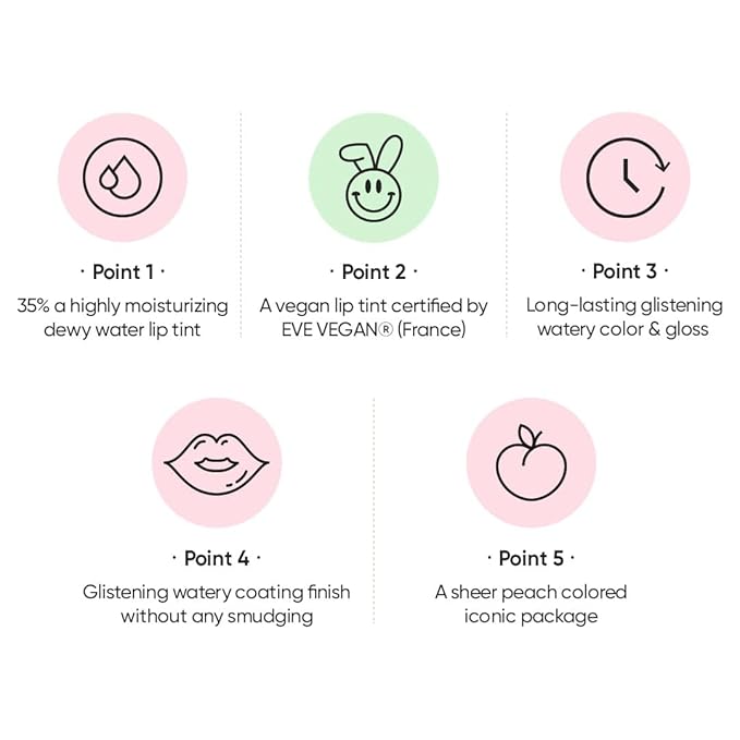 - 35% water-infused lip tint Fresh and light dewy texture adheres to your lips, with the triple structure of water-oil-water.