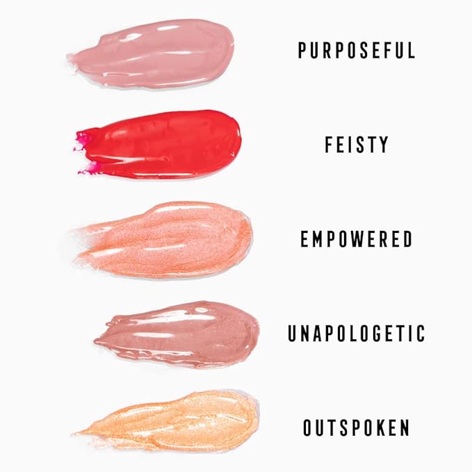- BOSSY GLOSS: Bossy Gloss is a "must have" in your daily makeup bag. This plumping lip care product will give your lips comfort, shine, and maximum volume! Available in 5 different colors with EMPOWERED giving a shimmery mid-tone peach look, the perfect color for a change maker!