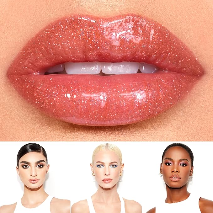 Vegan Lip Gloss for Soft Lips, Plumping Oil, Hydrating Non-Stick Lipgloss for Women, Provides Maximum Shine, Paraben and Cruelty Free (Empowered - Peach Color)