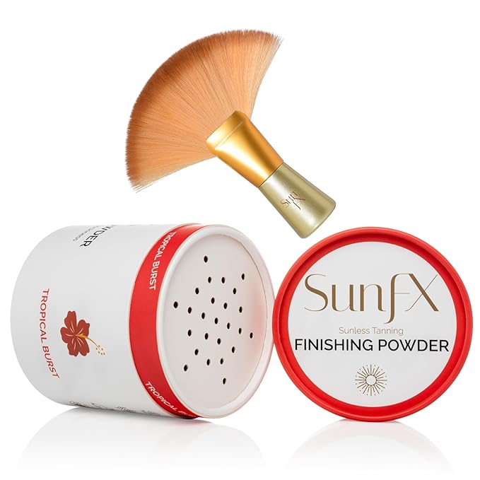 SunFX Post Spray Tan Translucent Finishing Powder | Talc Free | Sunless Tanning Powder with Large professional Fan Brush | Tropical Burst