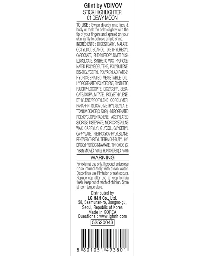 - GLINT STICK HIGHLIGHTER (7g/0.24oz) - What makes our stick highlighter special is that you can use it as a regular highlighter, a blush, or even as an eyeshadow, multi-functional, multi-tasking product. Formula applies smooth without drying the skin or flaking due to its triple-layer system which helps provide a deep moisturizing effect to create that glowy, dewy look. Available in 2 dreamy colors: Dewy Moon, and Milky Moon.