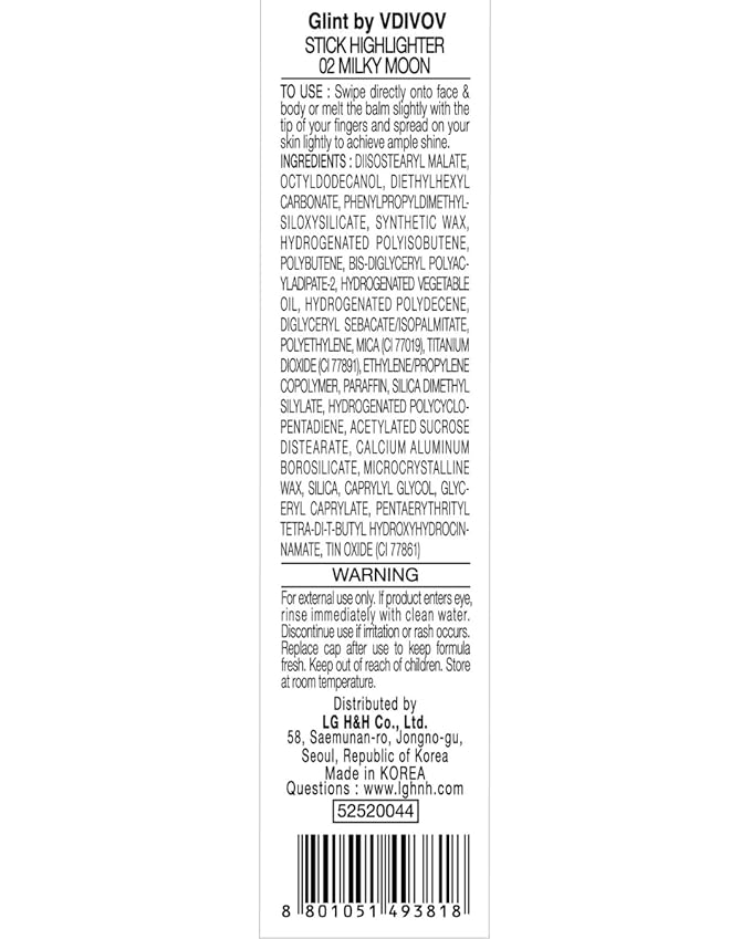 - GLINT STICK HIGHLIGHTER (7g/0.24oz) - What makes our stick highlighter special is that you can use it as a regular highlighter, a blush, or even as an eyeshadow, multi-functional, multi-tasking product. Formula applies smooth without drying the skin or flaking due to its triple-layer system which helps provide a deep moisturizing effect to create that glowy, dewy look. Available in 2 dreamy colors: Dewy Moon, and Milky Moon.