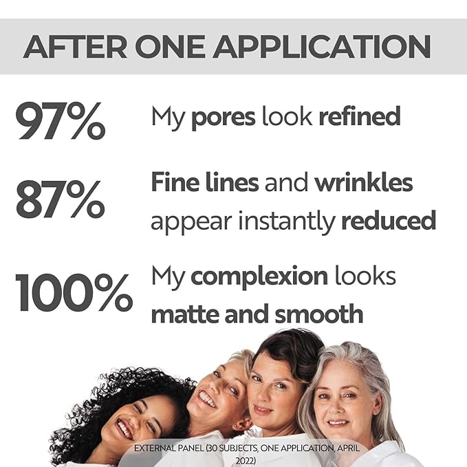 - ✅ WRINKLES & PORE MINIMIZER: instantly visually fills fine lines and wrinkles, visibly refines the appearance of pores leaving an even, refined complexion. The silky texture causes no mask effect.