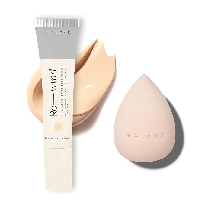 HALEYS Full-Coverage Concealer Set (Fair/Light-Neutral): Re-wind Blurring Full Coverage Concealer, Brighten, Reduce dark circles and fine lines, Longwear, Lightweight, Re-mix Makeup Sponge, Smooths