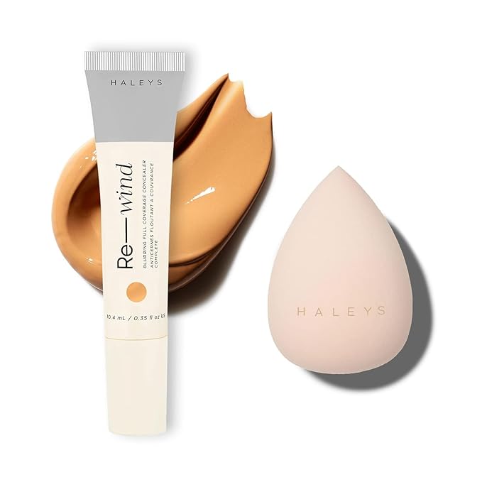 HALEYS Full-Coverage Concealer Set (Tan-Warm): Re-wind Blurring Full Coverage Concealer, Brighten, Reduce dark circles and fine lines, Longwear, Lightweight, Re-mix Makeup Sponge, Smooths, Blurs