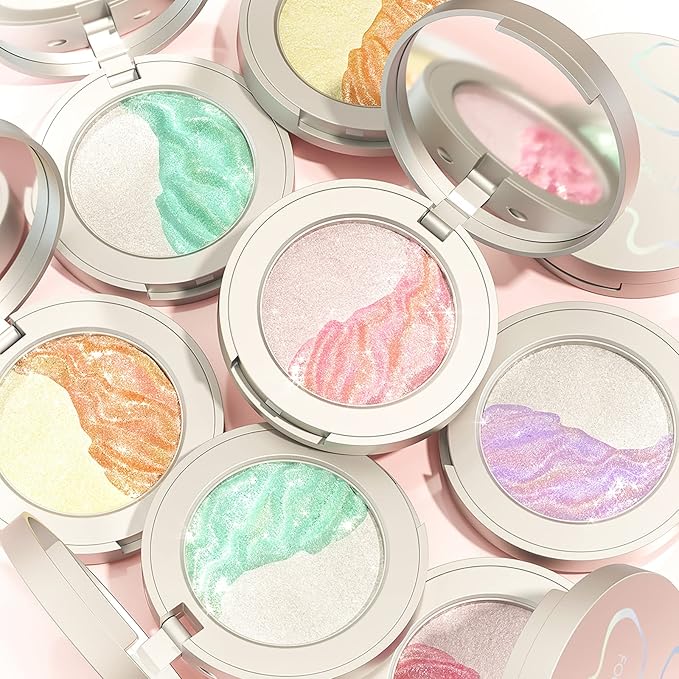 - LONG-LASTING & UNBUDGING - While brightening the complexion, the highlighting powder also has the effect of repairing and concealing blemishes. It can maintain a long-lasting clear and bright makeup without taking off easily.