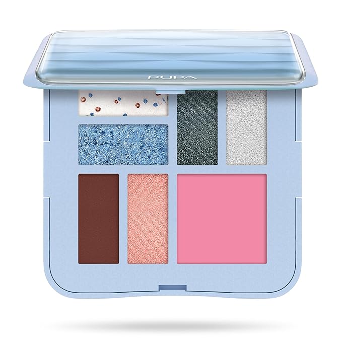 Pupa Milano Make-Up Palette S, 002 Light Blue, 0.28 oz - 7 Pan Eyeshadow Palette and Blush Palette with Matte, Shimmer Finish - Blendable Velvety Texture - Compact Travel-Friendly - Talc-Free Makeup