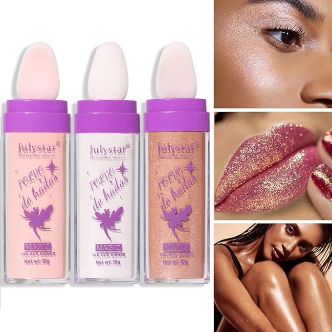 Polvo De Hadas Highlighter Stick Puff Fairy Stick Highlight Powder Glitter Loose Powder Brush Stick Contouring Powder Shimming Face Powder Blusher (01+02+03)