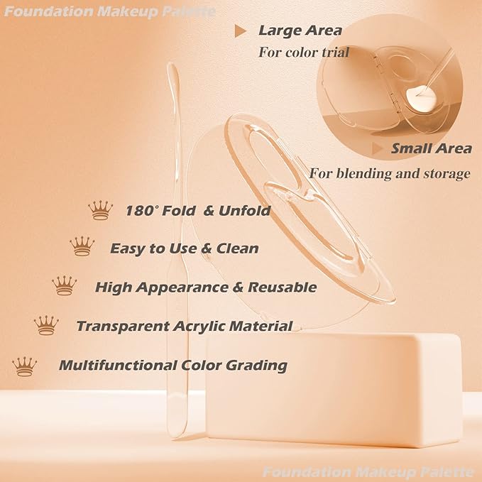 - 💄【Wide Applications】Acrylic foundation mixing palette is widely used, suitable for various of makeup use and daily use, can be used to mix lip gloss, concealer, foundation, eye shadows, nail polish, pigment, etc. Besides, the empty makeup palette is suitable for the professional makeup artist and makeup learner, ideal for home use or beauty salon.
