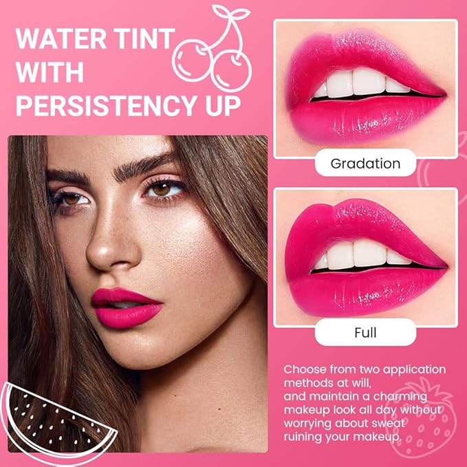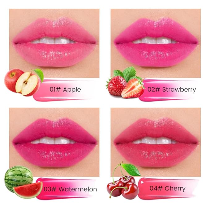 - ❤【4Pcs Lip Stain Tint Set】This items is 4Pcs Lip Stain Tint Set,Apple + Strawberry + Watermelon + Cherry,easy and comfortable everyday shades to brighten skin tone, plump and glossy lips, and show natural and charming lips color.