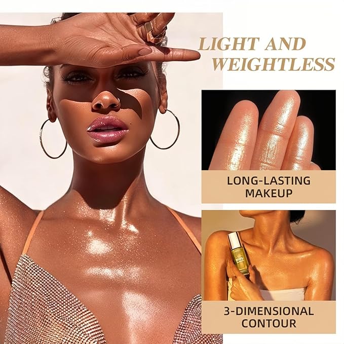 - 【Shimmer Body Luminizer】This is a nice subtle shimmer body luminizer, will give your body that halo glow. The shimmer is not a thick glitter but more of a sparkle shimmer, leave skin looking sun-kissed and feeling luxuriously soft, looking complexion. (5 Colors Available: Silver, Gold, Bronze Gold, Rose Gold, Glistening Bronze)