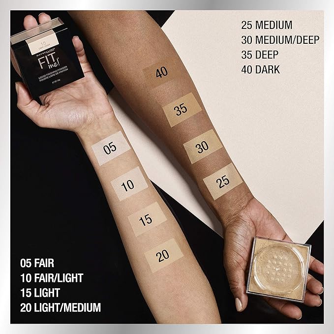 - A Shade That Fits Me: Maybelline Fit Me finishing powder provides coverage for a wide array of skin tones, from Ivory to Mocha; Use as a setting powder or to control shine for a flawless, natural-looking, "I woke up like this" finish