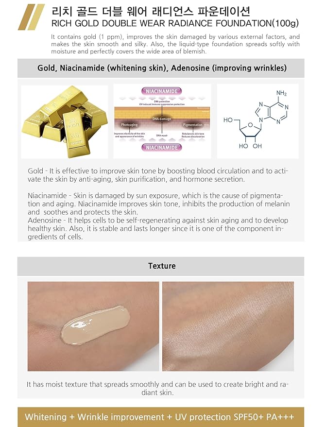 Enough Rich Gold, Double Wear Radiance Foundation, SPF 50+ PA+++, 23, 3.53 oz (100 g)