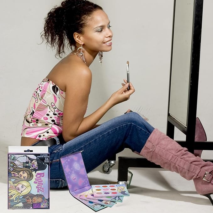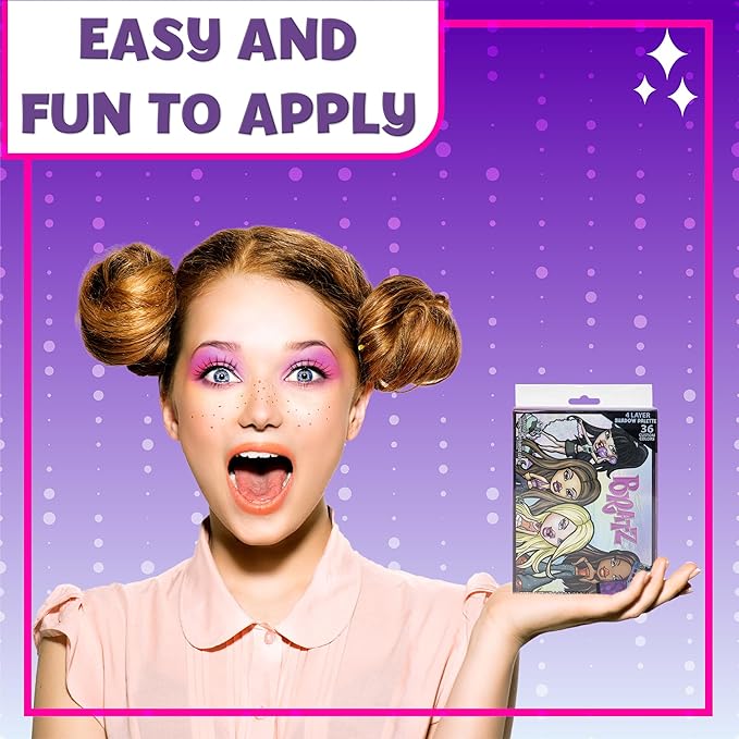 Bratz 27-Well Eyeshadow Swivel Palette, Shimmery and Opaque Colors, Pigmented Blendable, Long-lasting Colors, Non-Toxic, Perfect for Parties, Sleepovers & Makeovers