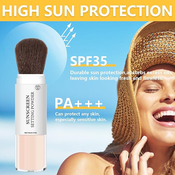 - 【Setting Powder Sunscreen】Face sunscreen powder can provide mineral broad-spectrum UV protection, which is safer and more effective against UVA/UVB. Mineral sunscreen ingredients, SPF 35, PA++, lightweight and breathable, gentle on skin, can quickly set makeup and control oil, presenting a delicate and perfect makeup. Suitable for all skin tones, it complements other makeup perfectly.