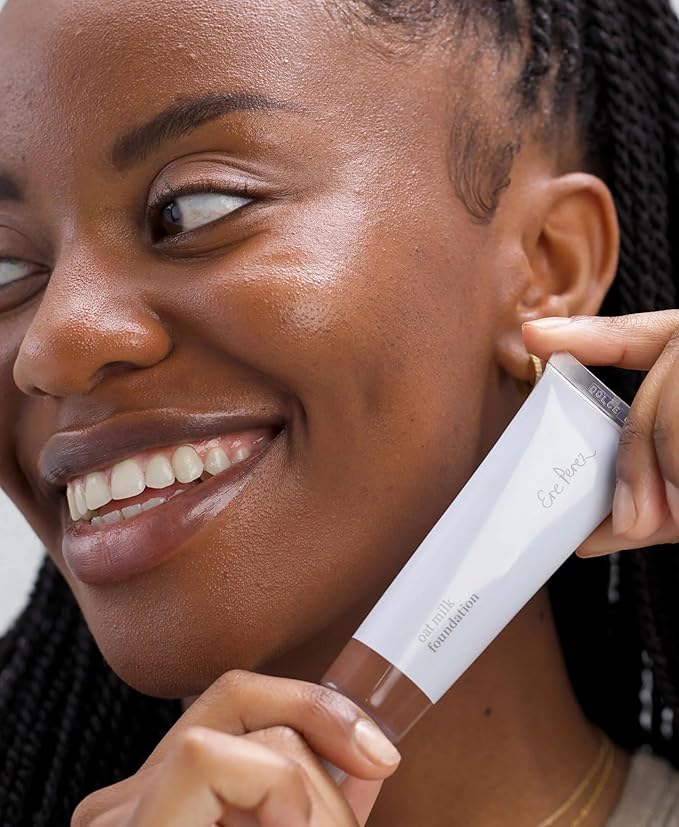 Ere Perez - Natural Oat Milk Liquid Foundation | Breathable, Buildable, Med-Full Coverage, Dewy | Peach Extract, Vitamin E | Vegan, Cruelty-Free, Clean Beauty (Dolce | dark warm, 1 fl oz | 30 ml)
