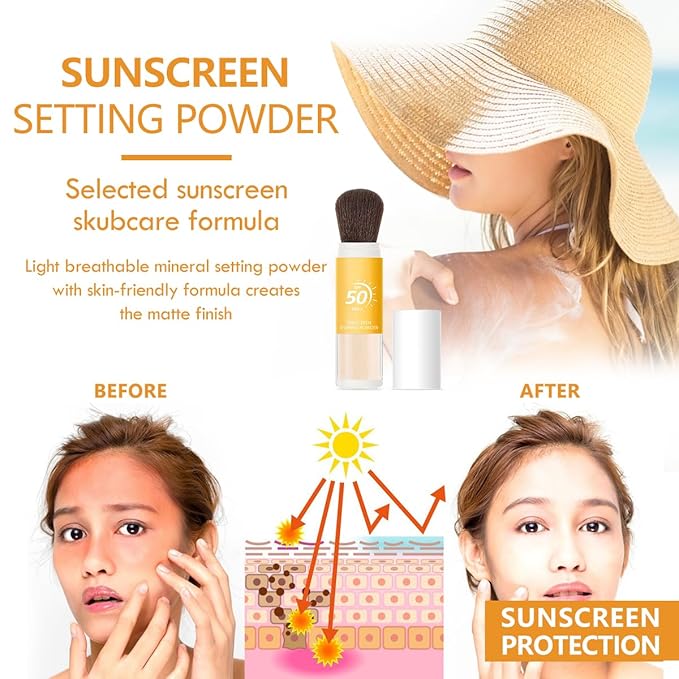 - 【Sunscreen Setting Powder】Light breathable mineral setting powder with skin-friendly formula creates the matte finish. Use alone or on top of makeup for easy re-use throughout the day to build a perfect, strong setting base makeup.