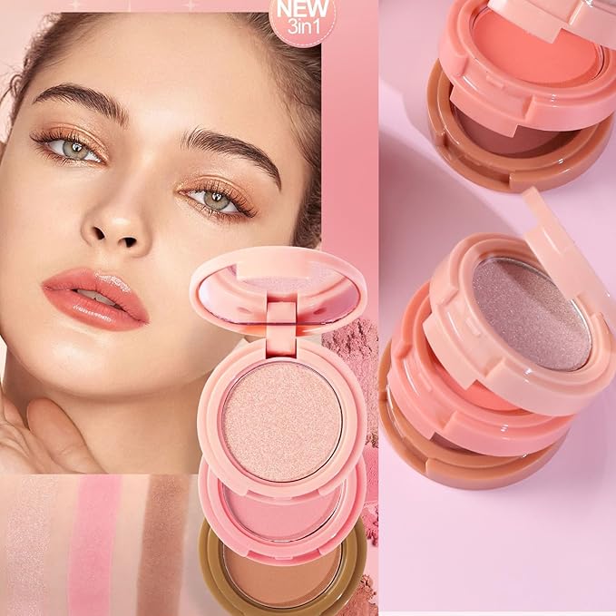 - 3 in 1 Highly Pigmented Makeup Palette --- This stackable makeup palette is a compact, travel-friendly makeup palette featuring three shades including blush,contour and highlighter, easy to create a perfect three-dimensional natural makeup