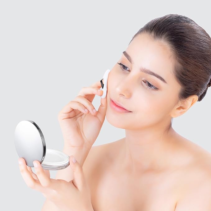 - Package Include - You will receive 4 packs silver powder compact containers, 2pcs plastic spoons. Each pack loose powder compact containers include 1 powder compact case with elastic mesh and mirror, 1 powder puff.