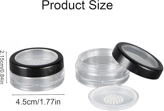 - 💎 Innovative Sifter Design: Each jar is equipped with a practical sifter and a black-rimmed lid, allowing controlled product release for precise application.