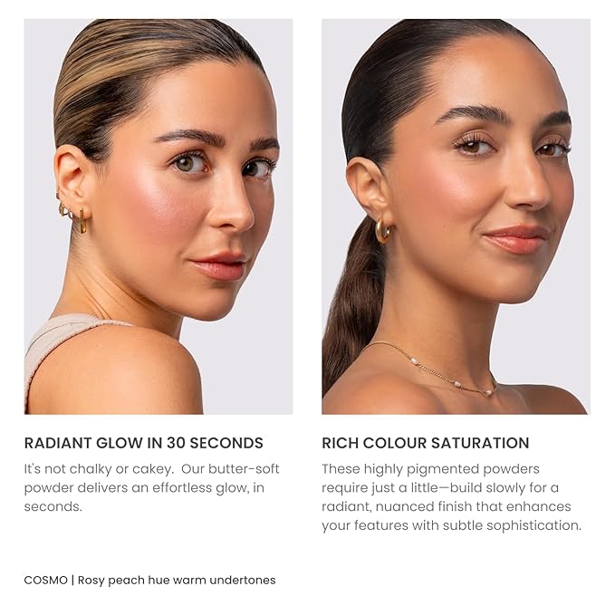 Phase Zero Makeup Powder Blusher - "Cosmo" - 4g / 0.141 oz - Full Coverage, Natural Blush - Soft, Buildable Pink, Coral, Peach & Golden Hues - Matte & Shimmering Shades Gives Cheeks a Radiant Glow