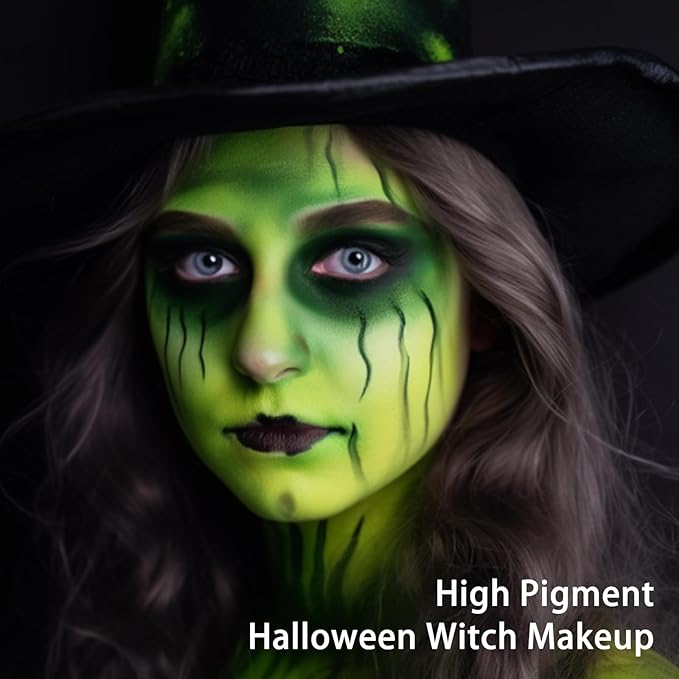 - - Our green face paint, with silky cream-based texture, is easy to use and will give a full coverage. Easy to apply and blend for various fancy makeup looks, such as Joker, witch makeup, zombie makeup, goblin makeup, sherek costume and more, a great green color for many other Halloween makeup looks.