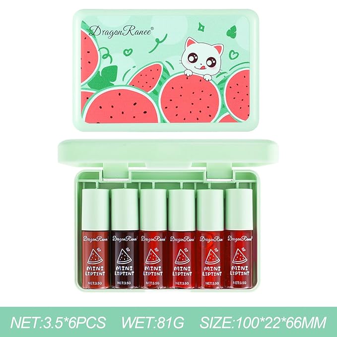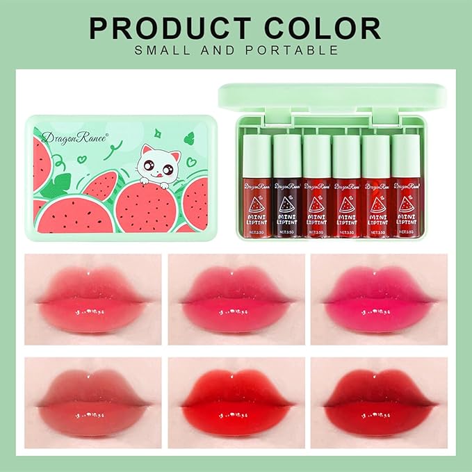 6 Colors Watermelon Lip Tint Stain Set, Korean Velvet Watery Lip Tint Moisturizing Mini Liquid Lip Gloss Lipstick, Multi-Use Lip and Cheek Tint, Long-Lasting, Vivid Color, Lightweight, High Pigment