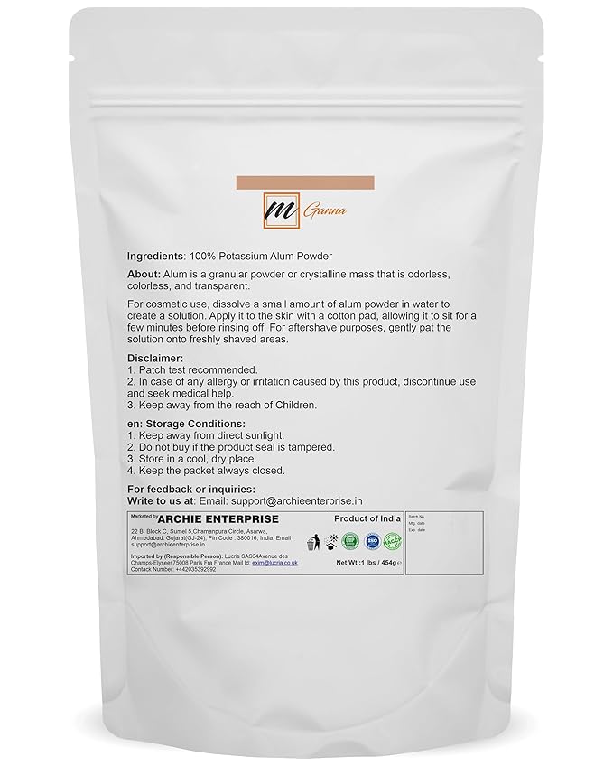 - mGanna Alum powder is 100% natural. It is free from any chemicals or any preservatives.