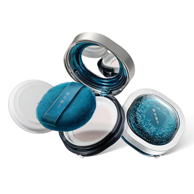 - Gift Powder Puff: The teal-colored velvet powder puff provides an even powder release and a clear color backdrop during application.